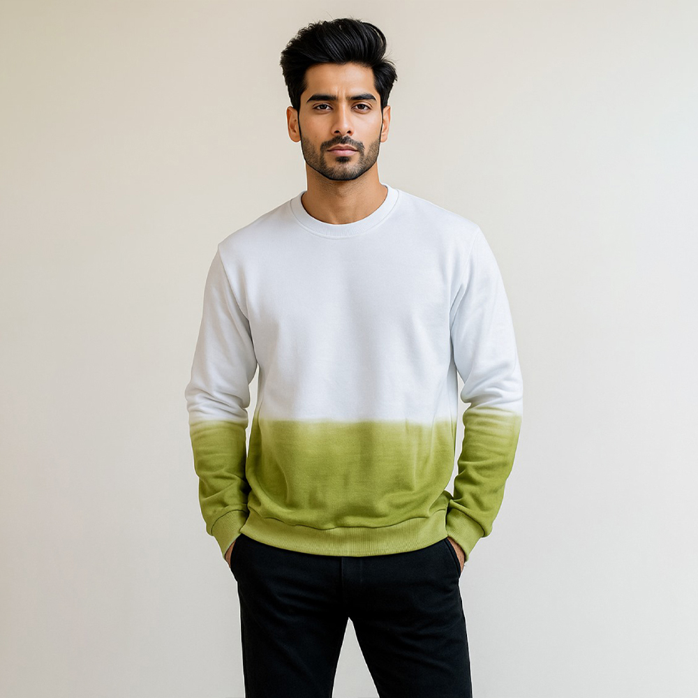 Upgrade your streetwear game with the men’s cotton tie dye sweatshirt in white & olive green ombre USA, designed for a perfect blend of style and comfort. Crafted from premium cotton fabric, this sweatshirt delivers soft, breathable wear that keeps you comfortable all day long. The eye-catching white and olive green ombre tie dye pattern adds a bold, modern edge, making it an ideal choice for casual outings, weekend hangouts, or everyday streetwear.