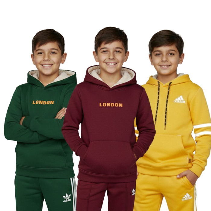 Our tracksuits are made from premium fleece fabric, soft and durable, providing warmth and comfort for kids in cooler weather.